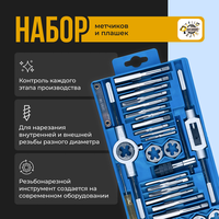 - Метчикодержатель - 1 шт. - Плашкодержатель - 1 шт. - Набор находится в удобном пластиковом кейсе.