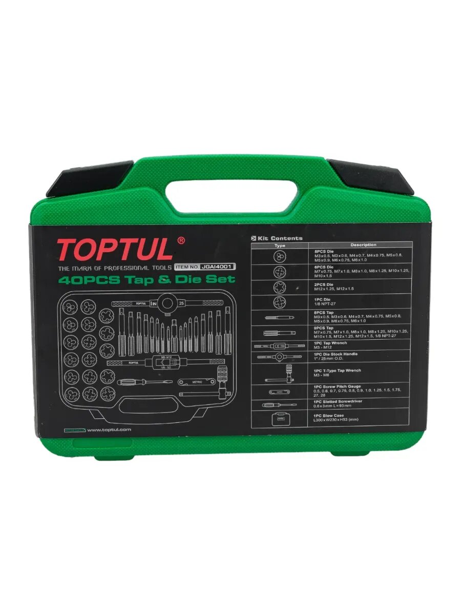 Купить Набор метчиков и плашек 40 предметов (М3-М12) TOPTUL с доставкой по всей России. Набор метчиков и плашек 40 предметов (М3-М12) TOPTUL: сравнение цен, характеристики, фото, актуальное наличие и цены.