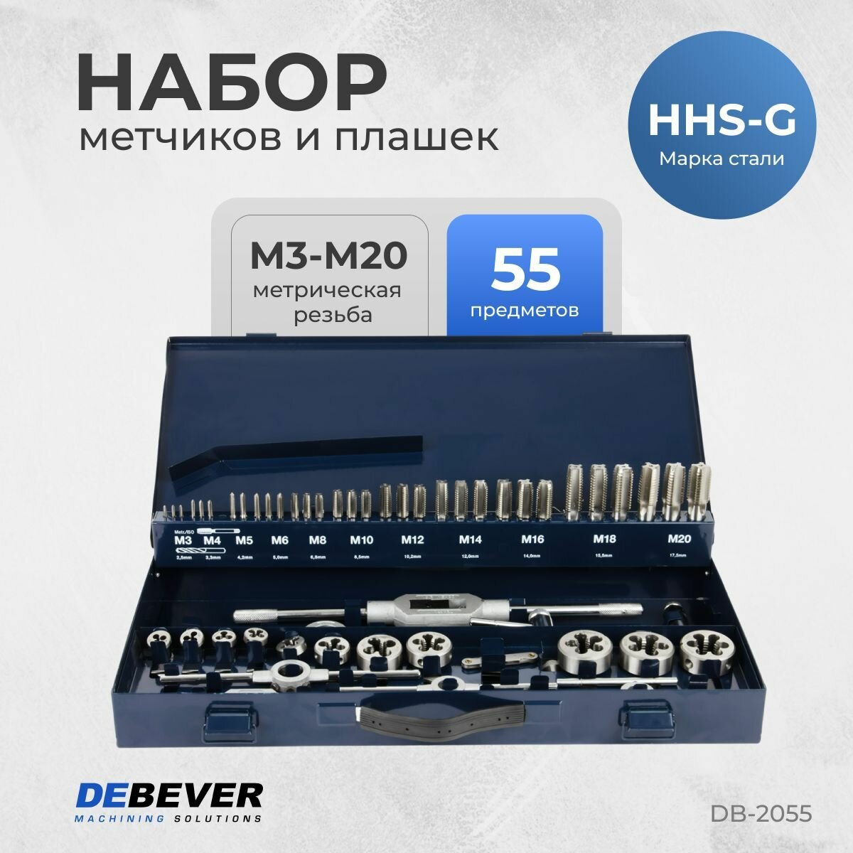 Купить Набор метчиков и плашек М3-М20 метрическая резьба HSS-G 55 предметов Debever Machining Solutions DB-2055 с доставкой по всей России.