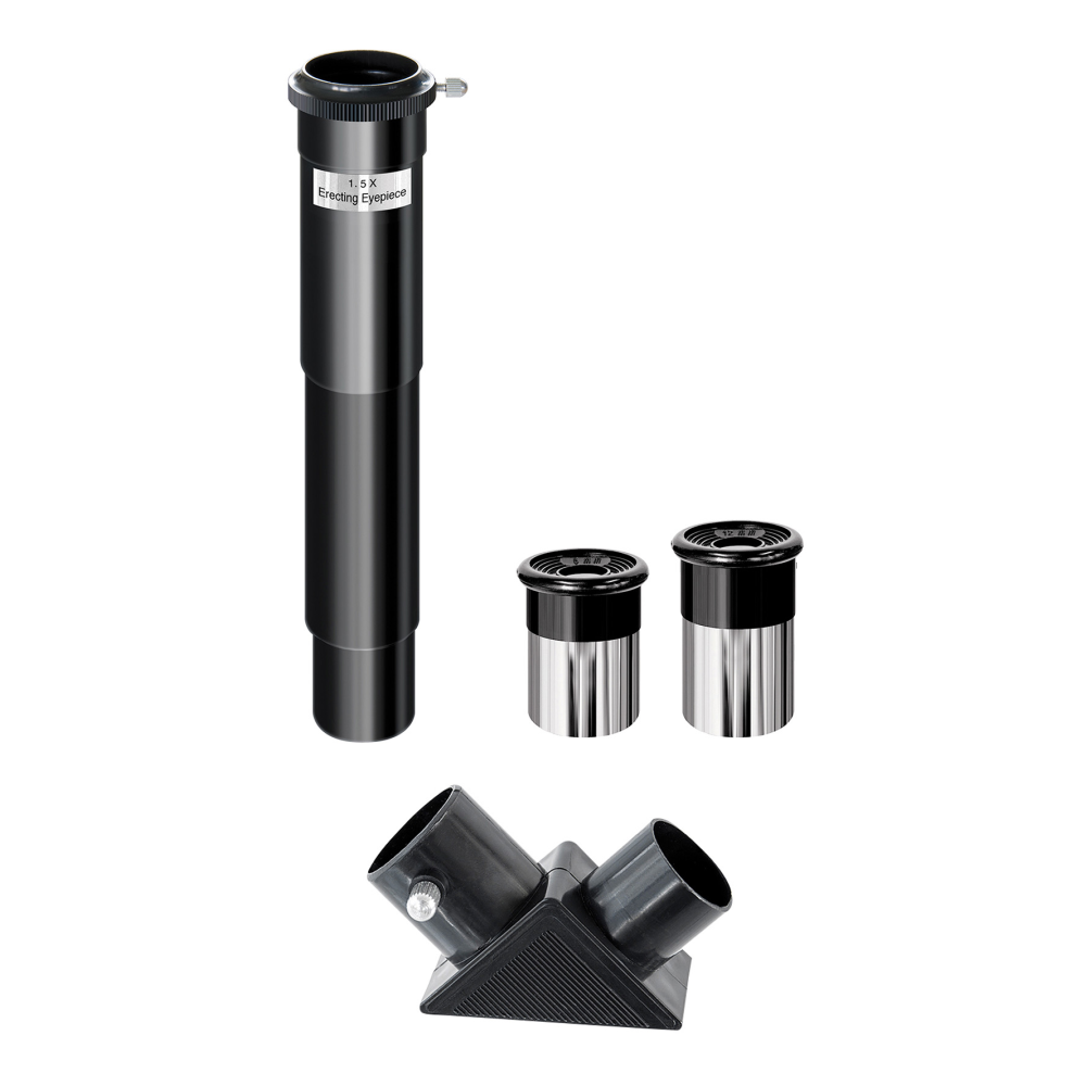 - 2 окуляра, телескоп-видоискатель, диагональное зеркало, 1,5-кратная оборачивающая линза, алюминиевый штатив, препараты, предметные стекла для микроскопа, держатель для смартфона