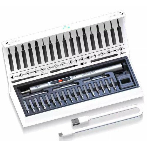 Xiaomi СreationSpace Electric Screwdriver CS0312A - надежный инструмент на все случаи жизни, который должен быть под рукой у каждого. Работает от перезаряжаемого аккумулятора. Всего три скорости. Направление вращения выбирается нажатием на одну из двух кнопок. В комплекте 28 бит из легированной стали S2 и бокс для компактного хранения полного набора, а также своевременной зарядки аккумулятора. В кейсе также сделаны углубления для намагничивания и размагничивания комплектных бит.
