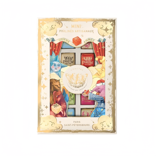 Классическая конфета счастье – это домашнее пралине из шоколада, обжаренных в тростниковом сахаре фундука и миндаля, с добавлением авторских сочетаний вкусов - натурального базиликового масла, кусочков имбиря, вишни, чернослива, кунжута, морской соли, грильяжа, карамели, ягод годжи и воздушной пшеницы.