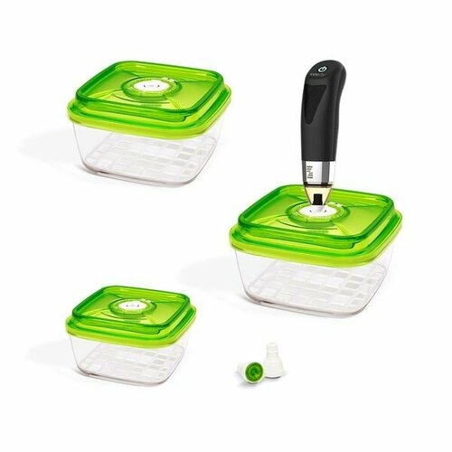 Набор VacSy Мини, состоящий из 5-ти предметов, создан для тех кто впервые открывает для себя преимущества хранения продуктов в вакууме. В то время как наборы VacSy Фэмили и Стандарт покрывают большинство потребностей в вакуумной упаковки пищевых продуктов, набор Мини является более доступным вариантом, но с меньшим количеством опций вакуумирования. Сохраните свежесть пищи до 5 раз дольше, чем в нормальных условиях холодильника - более естественным и здоровым образом.