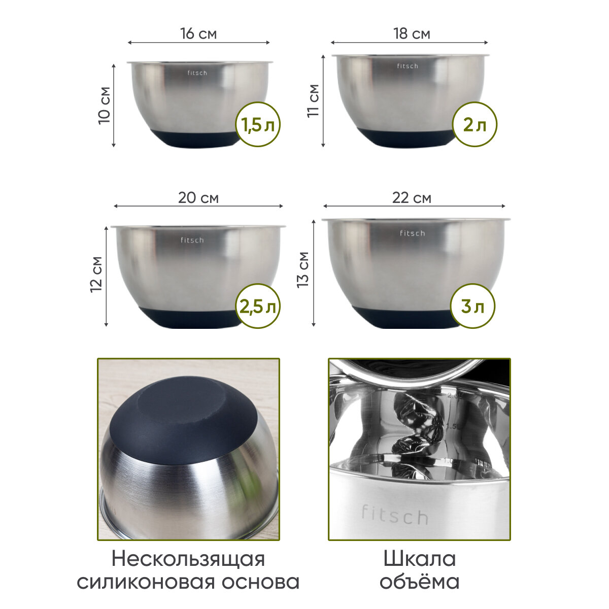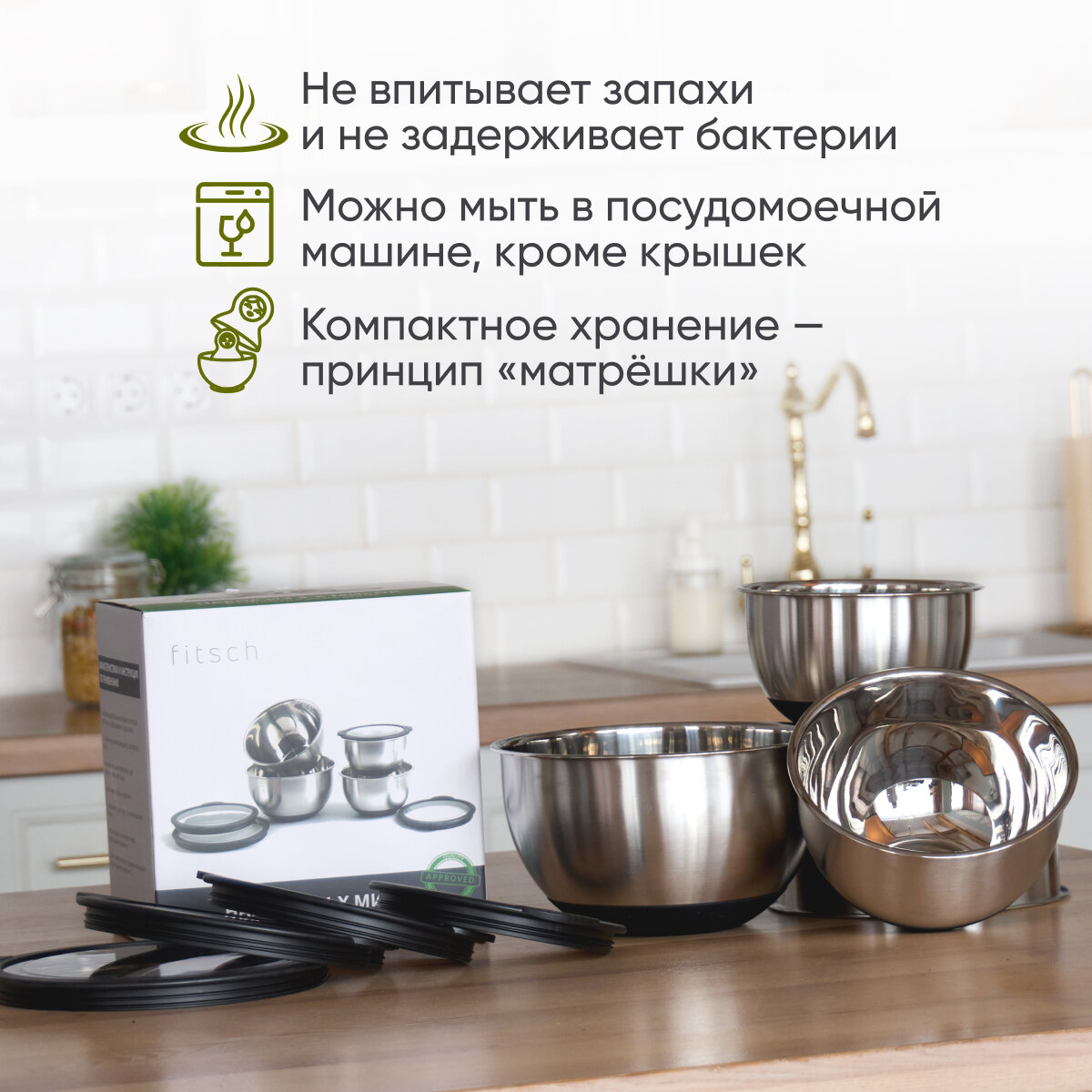 Набор мисок FITSCH станет отличным выбором для тех, кто ценит качество, функциональность и стиль.