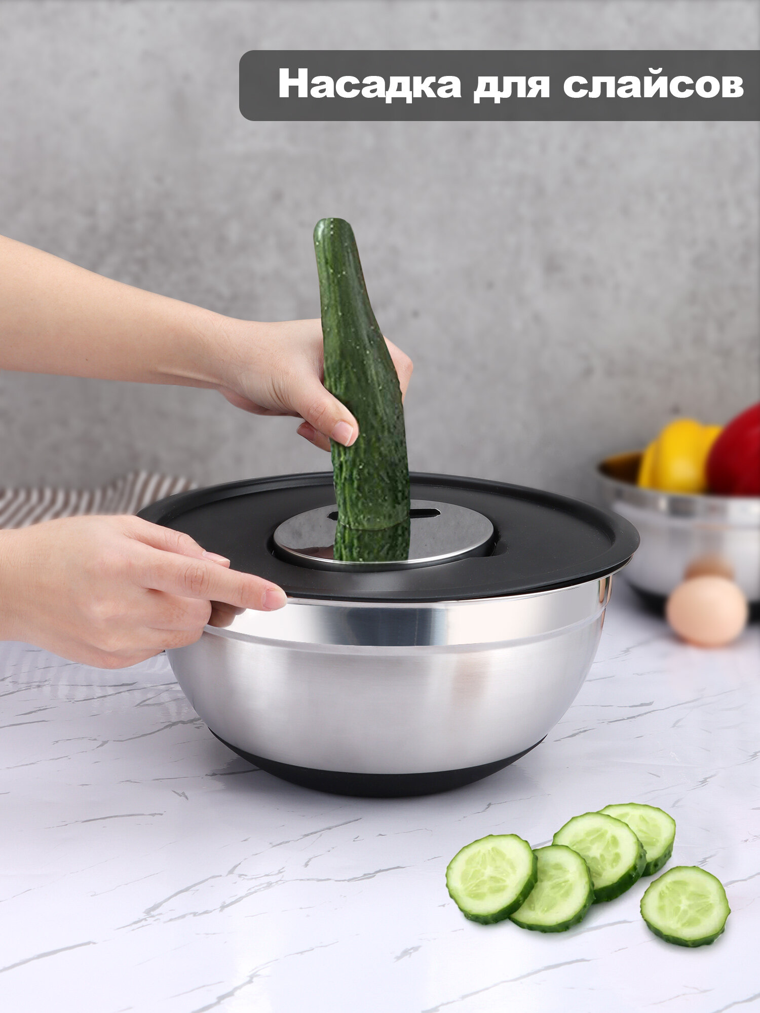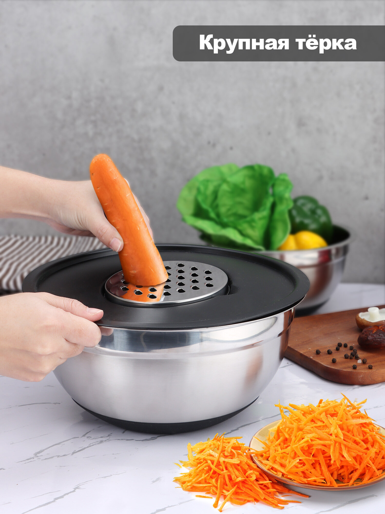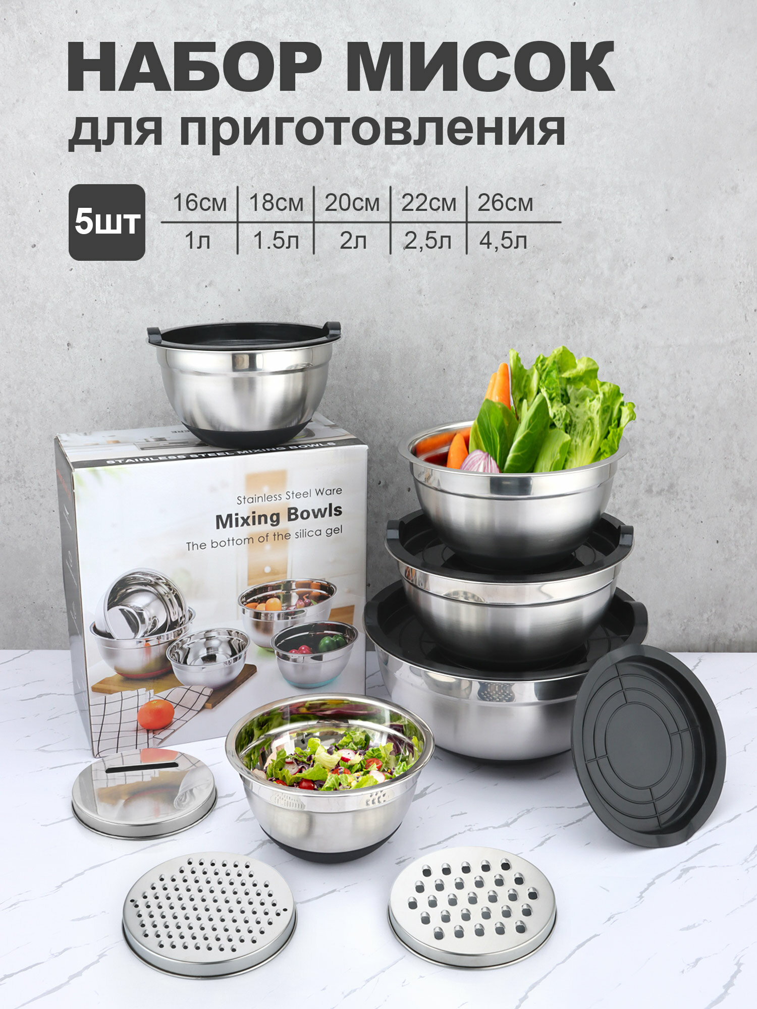1. Многофункциональное использование: миска для кухни включает в себя 5 разных размеров 1л,1.5л, 2л, 2.5л, 4,5л, достаточно для многократного использования на вашей домашней кухне, в пекарне и ресторане, например, для смешивания салатов, взбивания сливки, приготовления еды, подачи фруктов или хранения остатков. Прекрасный подарок для вашей семьи и друзей.