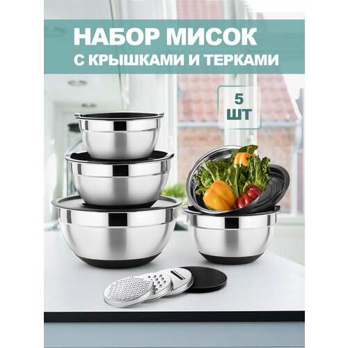 Купить Набор мисок с крышками из нержавеющей стали 5 шт с доставкой по всей России. Набор мисок с крышками из нержавеющей стали 5 шт: сравнение цен, характеристики, фото, актуальное наличие и цены.