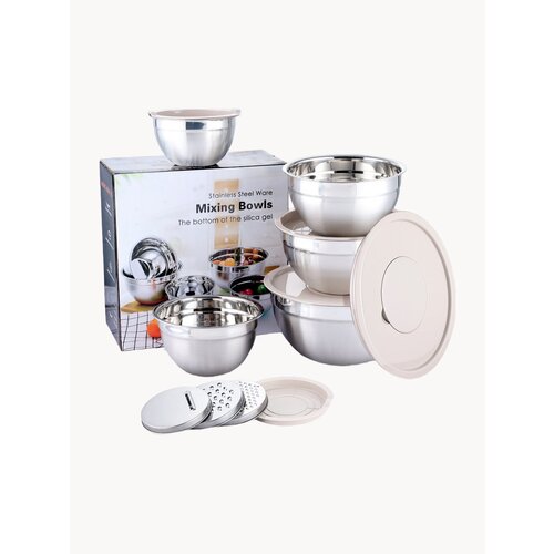 Набор мисок с крышками из нержавеющей стали для салатов и хранения, 5 шт: сравнение цен, характеристики, фото, актуальное наличие и цены.
