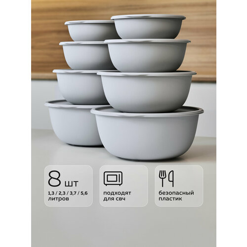 Набор мисок с крышками «Шарм №13», Альт-Пласт, 8шт, пластик, серый: сравнение цен, характеристики, фото, актуальное наличие и цены.