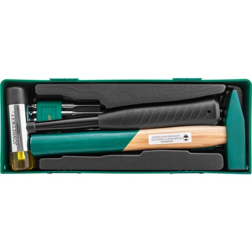 В набор Jonnesway M09513SP входит: молоток "немецкого" типа 500 гр, молоток с мягкими бойками и фиберглассовой ручкой, 840 гр, 11 предметов ударно-режущих инструментов (выколотки, керны, зубила), пластиковый ложемент. Инструменты ударного действия, применяемые для демонтажа крепежных деталей, таких как шпонки, шплинты, штифты и т. д.