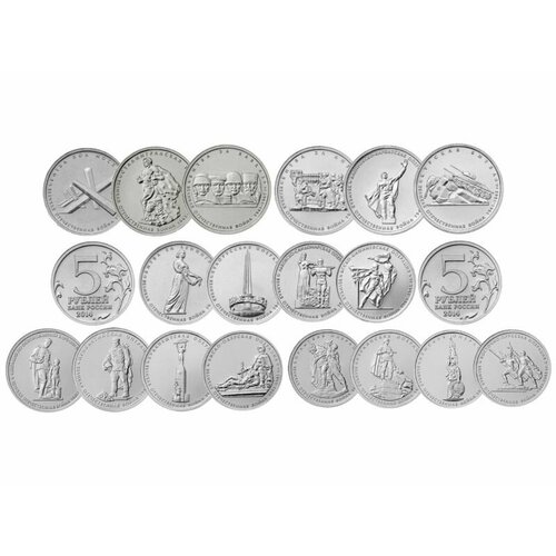 Набор монет 5 рублей 70 лет Победы в ВОВ 18 монет