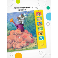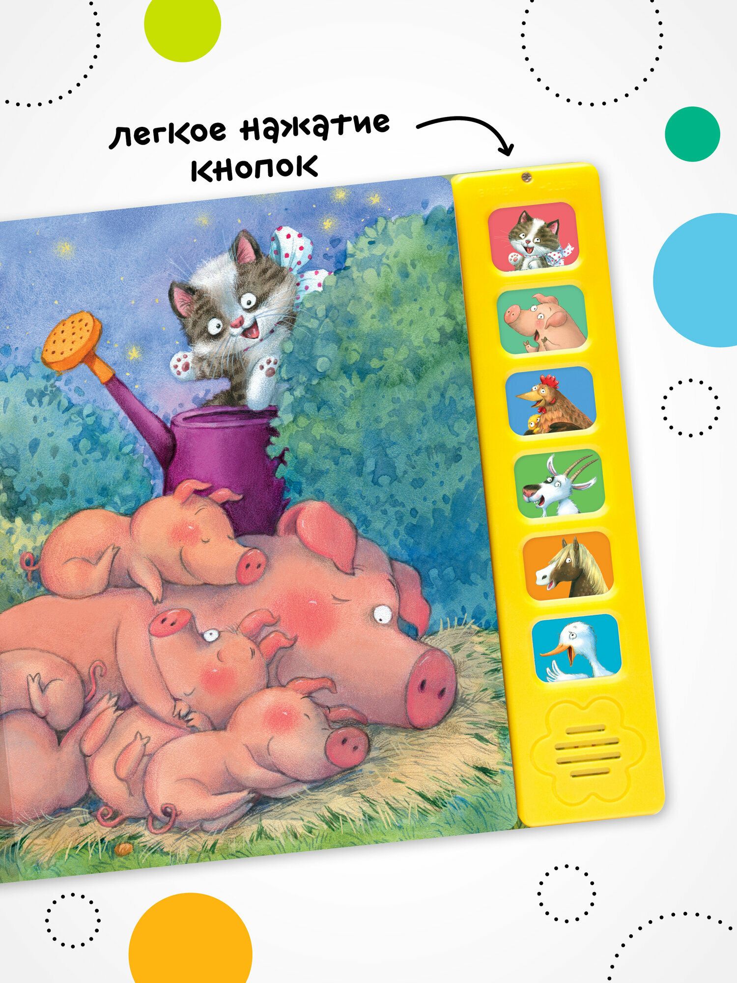 Вместе с забавным котенком он пожелает: «Спокойной ночи!» - лошадке, утятам, свинке, курице и другим домашним животным. Нажимая на кнопки, ребенок сможет послушать 6 разных звуков: кряканье утят, ржание лошадки и другие.