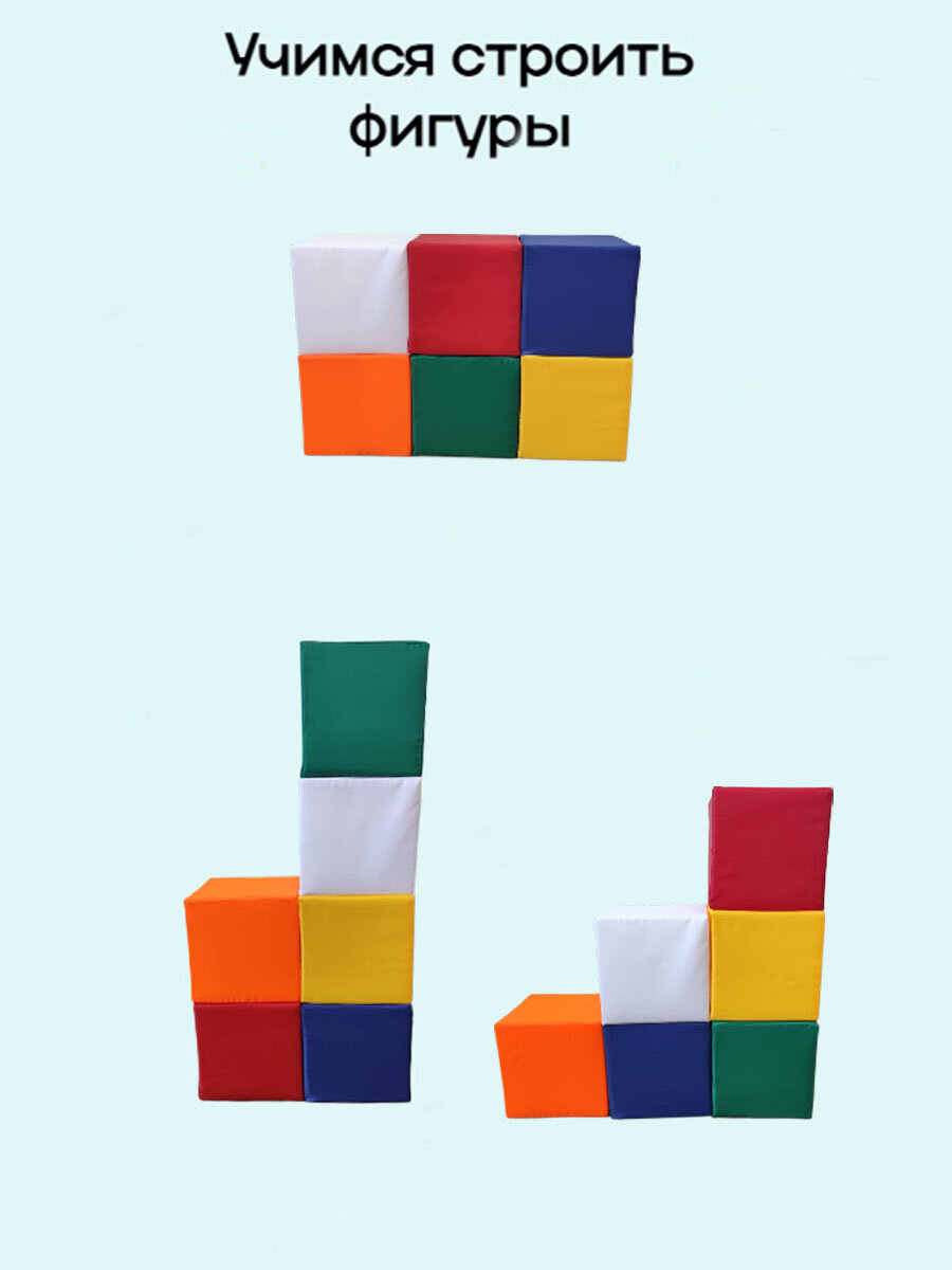 Купить Набор мягких кубиков для малышей пуфф лайн, 6 штук, 20x20x20 см, развивающие, разноцветные с доставкой по всей России.
