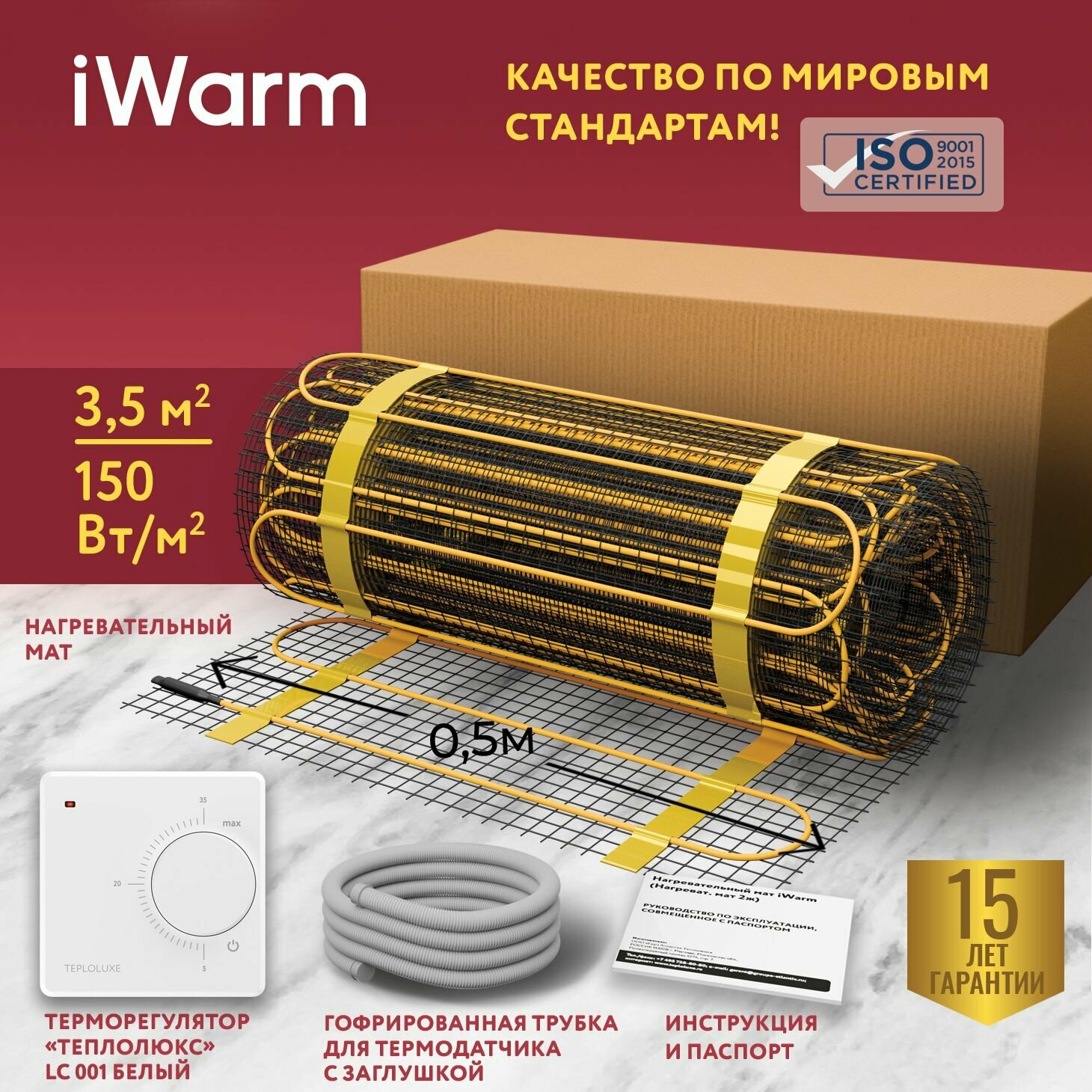 Гарантия на нагревательный мат - 15 лет. Гарантия на регулятор теплого пола - 1 год.