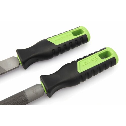 Напильник оснащён двухкомпонентной рукояткой для более комфортного проведения работ. На рабочую часть инструмента нанесена двойная перекрёстная насечка.