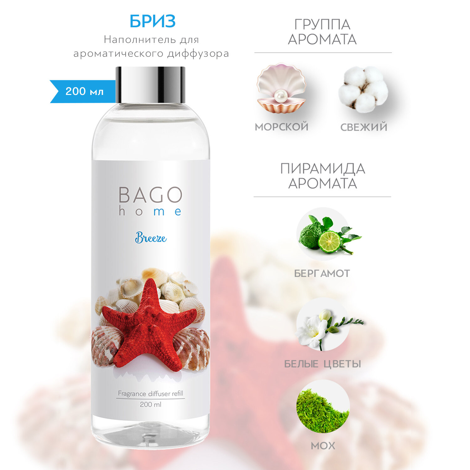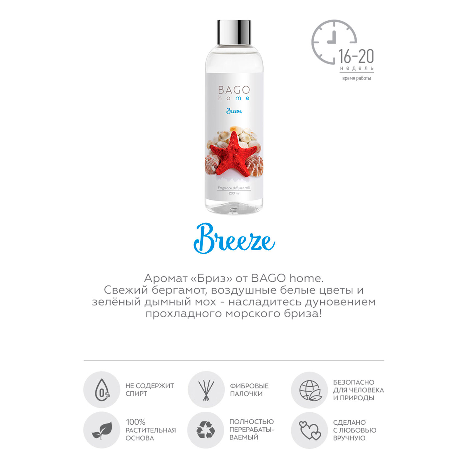 Купить Набор наполнитель для ароматического диффузора 200мл, с фибровыми палочками 16шт, BAGO home «Бриз» с доставкой по всей России.