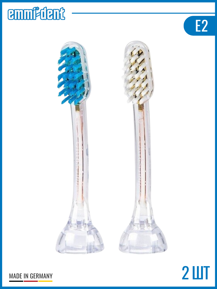 В комплекте 2 насадки, с красной и синей щетиной. Подходят ко всем щеткам Emmi-dent, кроме серии Platinum.