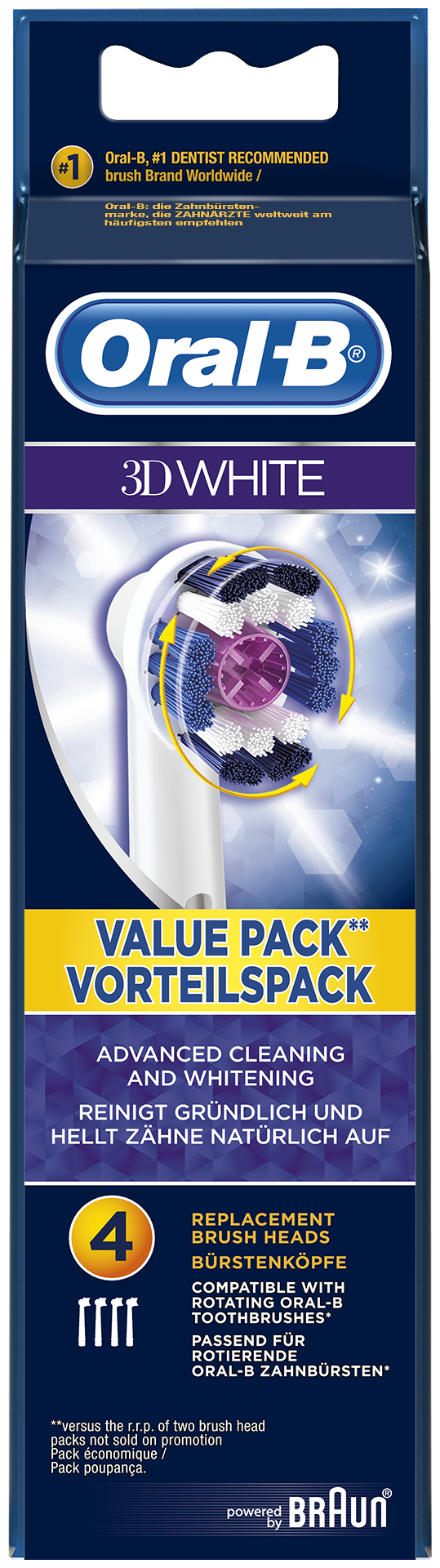 Сменные насадки подходят для всех моделей зубных щеток Oral-B, включая Oral-B Pro 1000, Oral-B CrossAction и Oral-B Smart Electric. Они легко заменяются и могут использоваться до 3 месяцев, прежде чем потребуется замена.