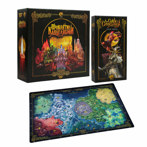 - Двусторонний неопреновый коврик с игровым полем игры «Проклятие Канделябрии». Игровое поле представляет собой земли Канделябрии. На нем появятся свечи, огни и замки, которые будут сражаться во время игры. Коврик станет незаменимым аксессуаром для всех, кто хочет максимально насладиться игрой. Размер коврика: 52х78 см.