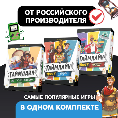 Комплект из трёх настольных игр серии "Таймлайн" по выгодной цене - История России, Сквозь века, Популярная культура.