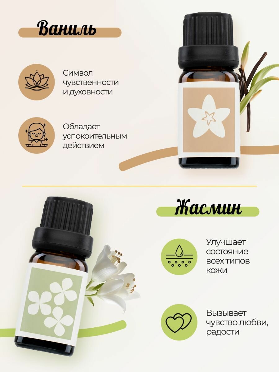 Используйте наши эфирные масла для ароматерапии, добавляя несколько капель в аромалампу, диффузор или увлажнитель воздуха. Позвольте их нежным и привлекательным ароматам наполнить вашу обстановку и создать расслабляющую атмосферу в вашем доме, офисе или спа-салоне. Вам также доступны другие способы использования этих эфирных масел. Используйте их для создания собственных парфюмерных смесей, массажных масел или добавления в вашу ежедневную рутину ухода за кожей и волосами. Масла идеально подходят для создания ароматических ванн или ароматического скраба для тела, позволяя вам окунуться в омолаживающую и успокаивающую атмосферу. Будьте уверены, что наши эфирные масла 100% натуральные и несут в себе силу природы. Они прошли строгий отбор, чтобы предложить вам только самые лучшие ароматы и лечебные свойства. Мы гордимся тем, что наши масла нефильтрованные и неразбавленные, не содержат никаких добавок или наполнителей, что обеспечивает максимальное качество и эффективность.