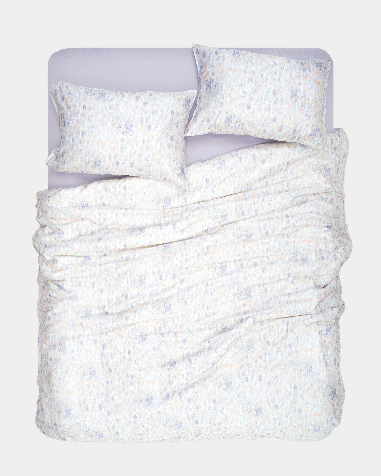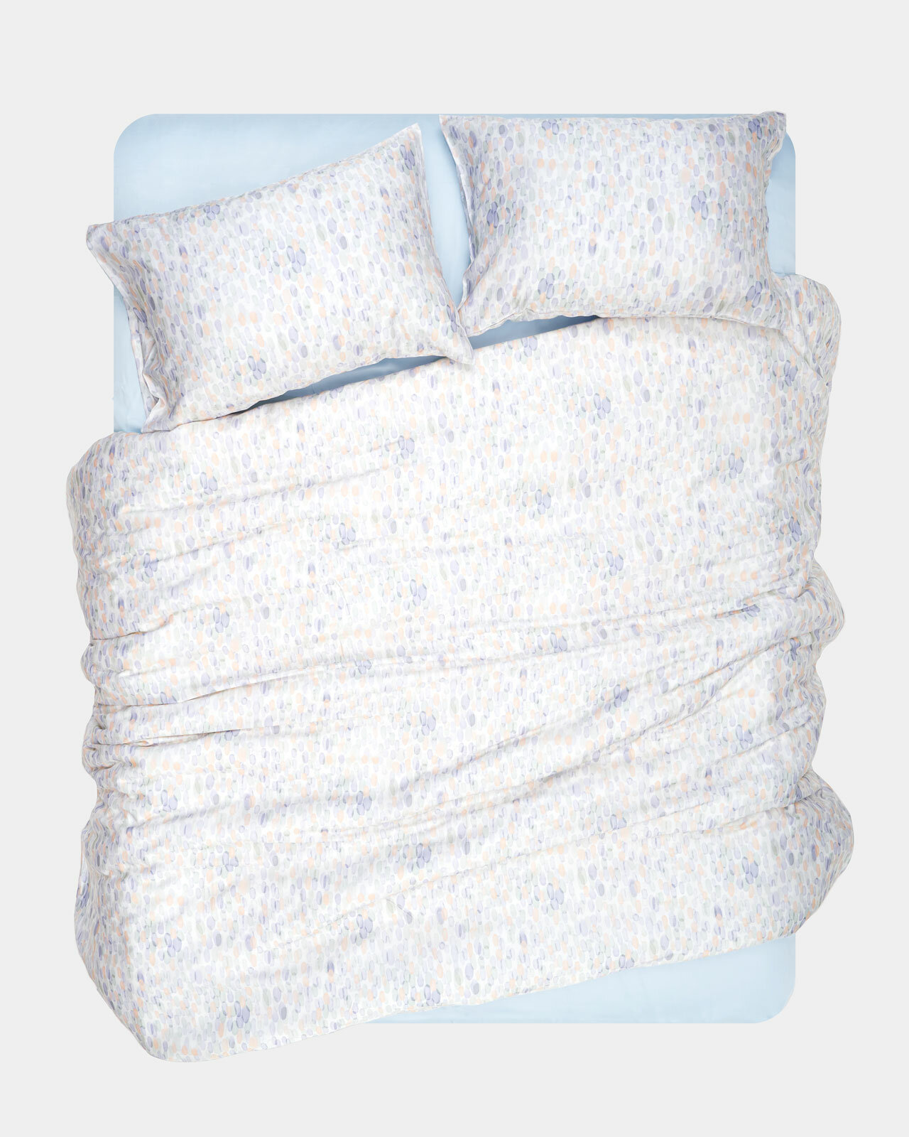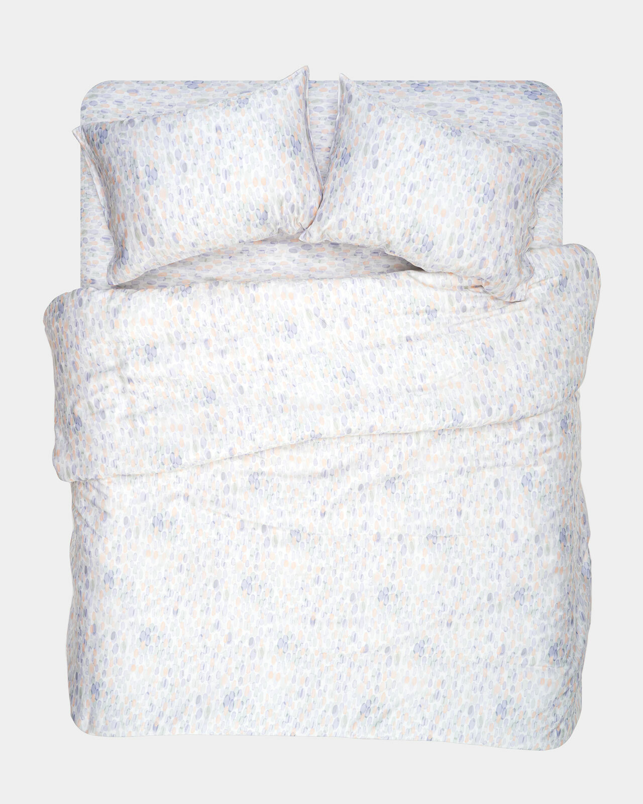 Легкая рука художника наносит на поверхность небольшие объемные штрихи. Освежающие цвета, прозрачность, много свободного пространства и наложение - постельное белье “Акварель” - тот самый компромисс между консервативным однотонным и ярко выраженным принтом.