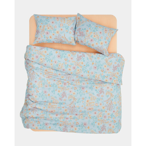 Основные цвета принта “Теплый рассвет” - светло-розовый, абрикосовый и приглушенный голубой. Постельное белье гармонично сочетается с нежным абрикосовым цветом, базовой слоновой костью и спокойным банановым.