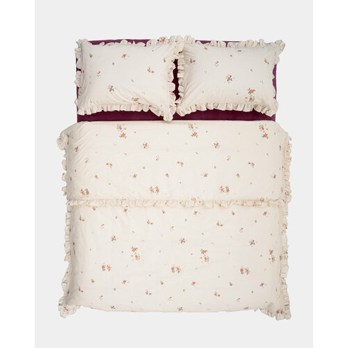 Пастельный цветочный принт и нежные рюши по периметру наволочек - дизайн, наполненный эстетикой сельского быта с простыми радостями и насыщенным вкусом жизни.