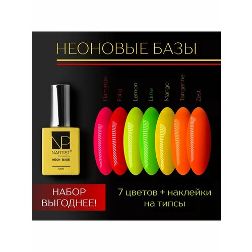 Купить Набор неоновых баз для ногтей 7 цветов Neon Base 12ml с доставкой по всей России.