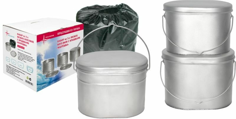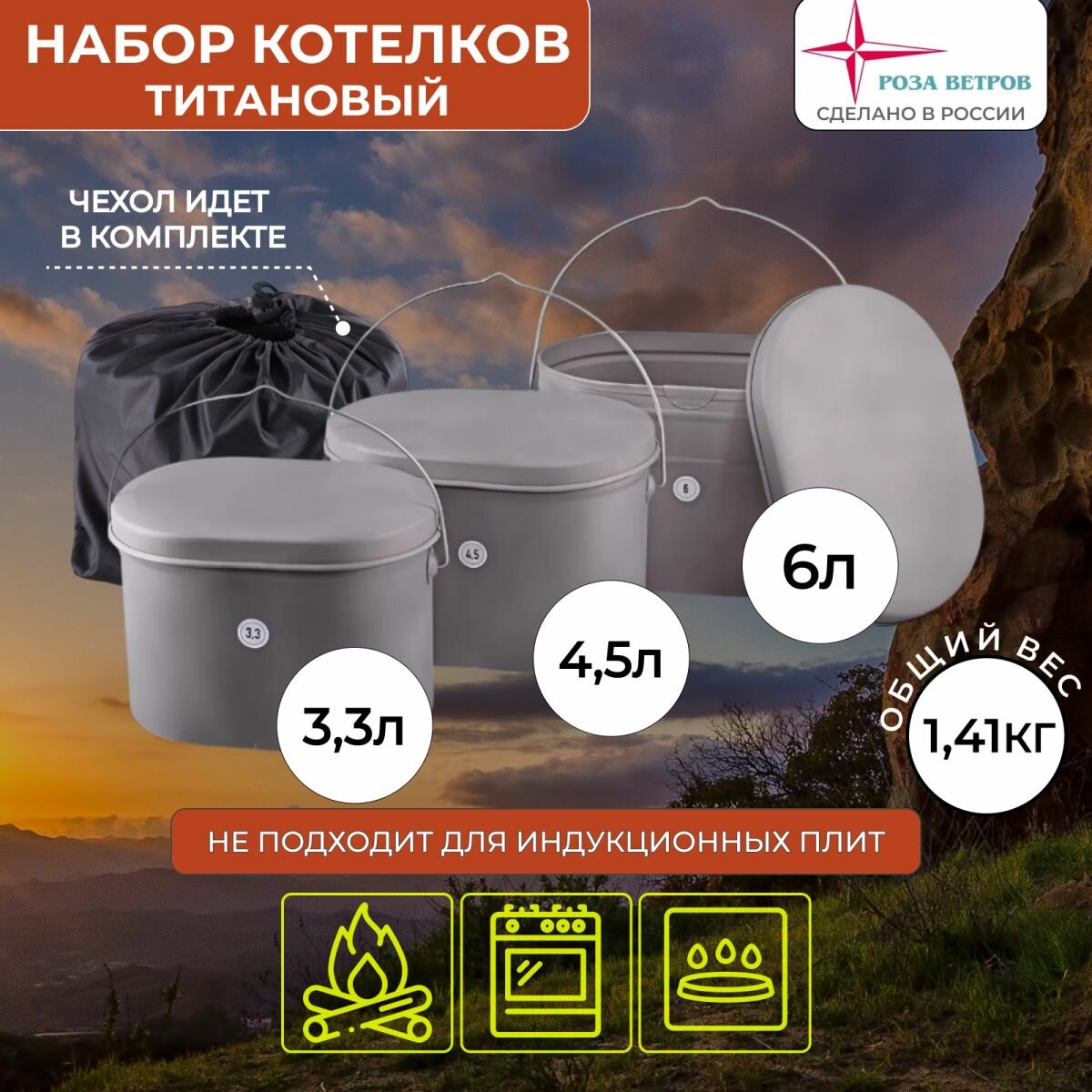 Купить Набор низких котелков (3,3;4,5;6 л) титан крышки без ручек Роза ветров с доставкой по всей России. Набор низких котелков (3,3;4,5;6 л) титан крышки без ручек Роза ветров: сравнение цен, характеристики, фото, актуальное наличие и цены.