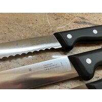 Классика в стиле модерна, наиболее точное описание серии Classic Line от компании WMF. Невероятная острота лезвий, комбинируемая эргономичными, бесшовными рукоятями, создают невероятное ощущение комфорта в Ваших руках. Рукояти выполнены из высококачественного пластика, абсолютно гигиеничны. Лезвия производятся из специальной, кованой стали, что делают их необычайно прочными и долговечными. Невероятная острота, благодаря которой, кухонный нож особенно хорошо справляется со всеми своими непосредственными задачами, а также устойчивость от нежелательного влияния кислот и коррозии, превращают ежедневное использование в полет кулинарного творчества.