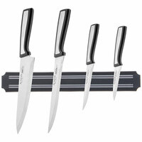 Магнитный держатель для ножей изготовлен из пластика и имеет открытую подставку. Это позволяет удобно хранить ножи и обеспечивает быстрый доступ к ним.