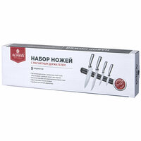 Купить Набор ножей Agness, с магнитным держателем, 5 предметов: 4 ножа + держатель с доставкой по всей России. Набор ножей Agness, с магнитным держателем, 5 предметов: 4 ножа + держатель: сравнение цен, характеристики, фото, актуальное наличие и цены.