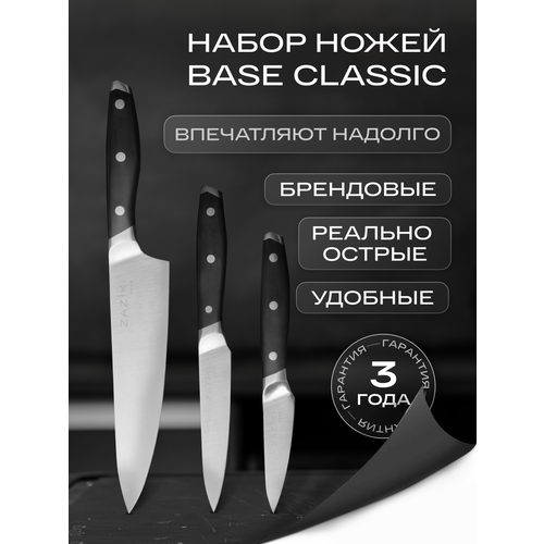Набор ножей для кухни ZAZIKI Base Classic 3шт из нержавеющей стали