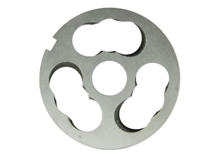 Набор ножей и решеток с буртом для мясорубки МИМ-500: МИМ-600: МИМ-600М . Данный комплект предназначен для промышленных мясорубок, использующихся на предприятиях общепита, в производственных цехах , на предприятиях торговли, которые занимаются выпуском гастрономических товаров, измельчением мяса, и рыбы на фарш. Толщина ножа( с буртом) 18 мм, диаметр внешний 95 мм. В набор входят следующие детали: нож , двухсторонний с буртом, посадочное отверстие 20мм, внешний размер 95мм, вес 174г- 2 шт; нож подрезной - 1 шт, с буртом, посадочный ( внутренний) диаметр -25мм, внешний диаметр 105 мм, толщина 9 мм, вес 296 г; решетка №2-1 шт, с буртом, внешний диаметр 105 мм, посадочный( внутренний) диаметр 25 мм, толщина 9 мм, отверстий на решетке, диаметром 5мм- 132 шт, вес 377 г; решетка №3 - 1шт, с буртом, внешний диаметр 105 мм, посадочный (внутренний)- 25 мм, толщина 9 мм, диаметр отверстий на решетке 9мм , количество отверстий- 54 шт, вес 318 г. Общий вес комплекта МИМ-600 ( с буртам)- 1339 г. Детали выполнены из качественной нержавеющей стали . Используется в профессиональных мясорубках, работающих с большим объемом мясной продукции, предназначен для мелкого измельчения. Подходит для промышленных мясорубок МИМ-500: МИМ-600 и МИМ-600М Торгмаш Барановичи Беларусь.