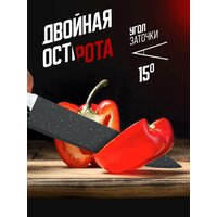 Набор кухонных ножей из 5 штук + бонус в красивой подарочной упаковке из 6 предметов. Все, особенно женщины, обожают получать в качестве подарков посуду и кухонные принадлежности. В комплекте хорошие качественные кухонные ножи: нож для фруктов и овощей, нож кухонный универсальный, нож для нарезки, нож поварской, нож для хлеба и + овощечистка керамическая. Кухонный набор принадлежностей является отличным подарком для дома и Ваша кухня засияет блеском стали нового набора кухонных ножей. Набор кухонных ножей имеет нержавеющую высококачественная сталь, мраморное покрытие, острую заточку и антибактериальное покрытие. Благодаря острым лезвиям, инвентарь режет без особых усилий всё: хлеб, овощи, фрукты, сыр, мясо, рыбу, курицу или ветчину, кондитерские изделия. Удобно лежит в руке благодаря нескользящему материалу. Очень легкие. Такая кухонная утварь набор на природу станет помощником и украшением вашей кухни или как подарки женщинам, маме, сестре, подруге, бабушке или любой женщине, повару, подарочный нож для мужчин на любой праздник. Будь то День Рождения, Новый Год, Рождество, 8 марта, 23 февраля или другой. Осторожно - острые ножи кухонные стальные! Мы гарантируем качество товара!
