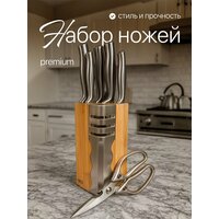 Купить Набор ножей кухонных на подставке 5 шт, с ножницами и точилкой бесшовное соединение нержавеющая сталь с доставкой по всей России. Набор ножей кухонных на подставке 5 шт, с ножницами и точилкой бесшовное соединение нержавеющая сталь: сравнение цен, характеристики, фото, актуальное наличие и цены.