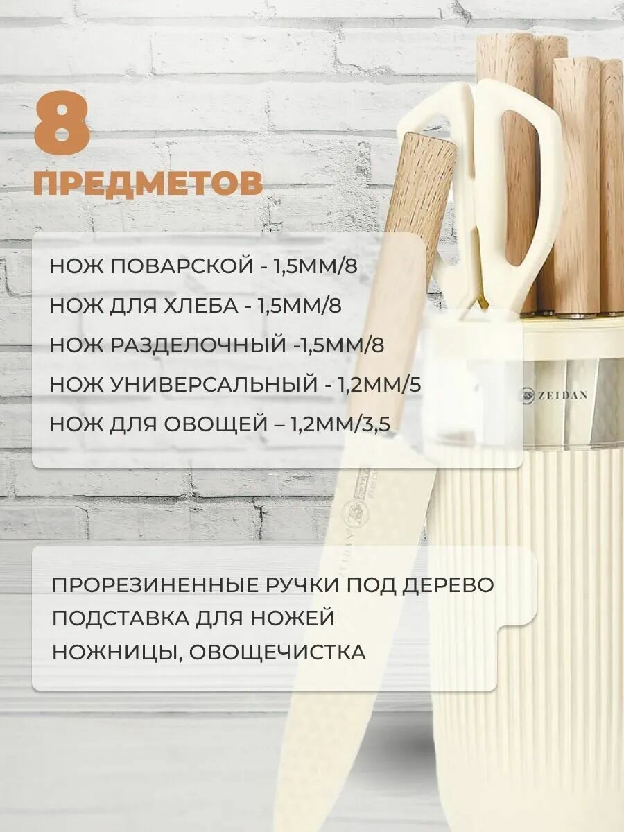 Купить Набор ножей кухонных на подставке ZEIDAN 8 предметов из нержавеющей стали с прорезиненными ручками с доставкой по всей России. Набор ножей кухонных на подставке ZEIDAN 8 предметов из нержавеющей стали с прорезиненными ручками: сравнение цен, характеристики, фото, актуальное наличие и цены.