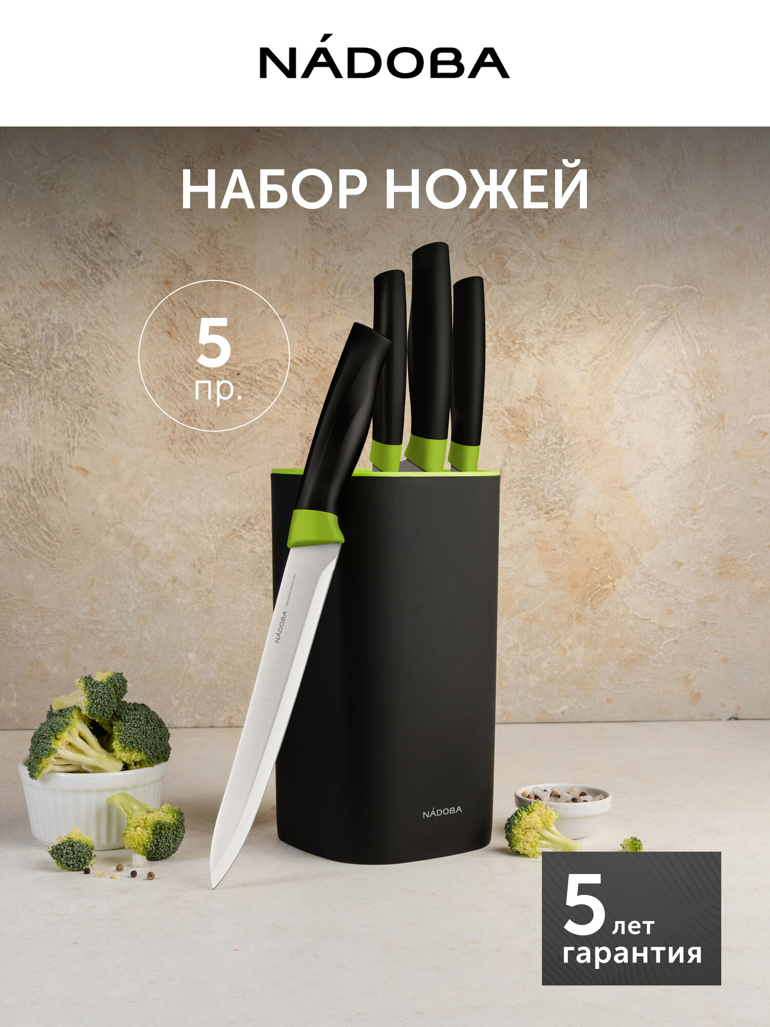 Купить Набор ножей кухонных на универсальной подставке, NADOBA, серия OLIVIA, 5 предметов, нержавеющая сталь, пластиковая ручка с доставкой по всей России. Набор ножей кухонных на универсальной подставке, NADOBA, серия OLIVIA, 5 предметов, нержавеющая сталь, пластиковая ручка: сравнение цен, характеристики, фото, актуальное наличие и цены.