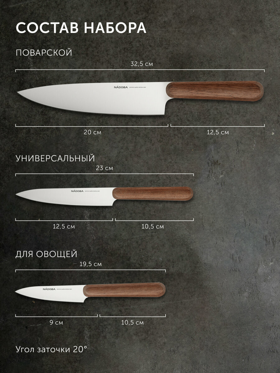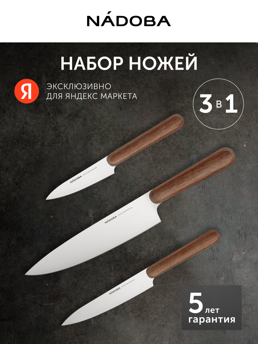 Купить Набор ножей кухонных поварской NADOBA, серия DARIO, 3 предмета, нержавеющая сталь, деревянная ручка с доставкой по всей России. Набор ножей кухонных поварской NADOBA, серия DARIO, 3 предмета, нержавеющая сталь, деревянная ручка: сравнение цен, характеристики, фото, актуальное наличие и цены.