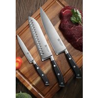 Шеф нож большой, с широким и острым лезвием подходит для нарезания, разделки, шинковки и резки, обеспечивая идеальную текстуру и размер нарезаемых продуктов. Нож сантоку, кухонный с характерным японским дизайном, обеспечивает универсальность при работе с мясом , рыбой, зеленью и овощами, а эстетика японского дизайна добавляет нотку элегантности и вдохновения в процесс готовки. Универсальный овощной маленький нож обладает компактными размерами и служит удобным инструментом для решения множества задач: от нарезки хлеба до подготовки ингредиентов для салатов, для чистки.