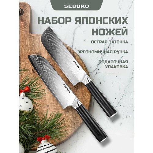 Набор кухонных японских ножей Seburo SARADA Damascus 2 шт.