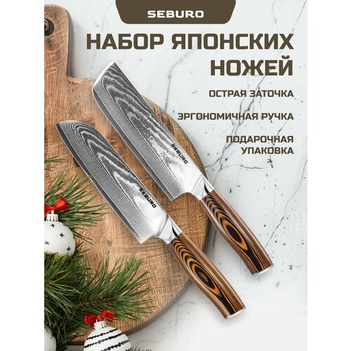 Набор кухонных японских ножей Seburo SUBAJA Damascus 2 шт.
