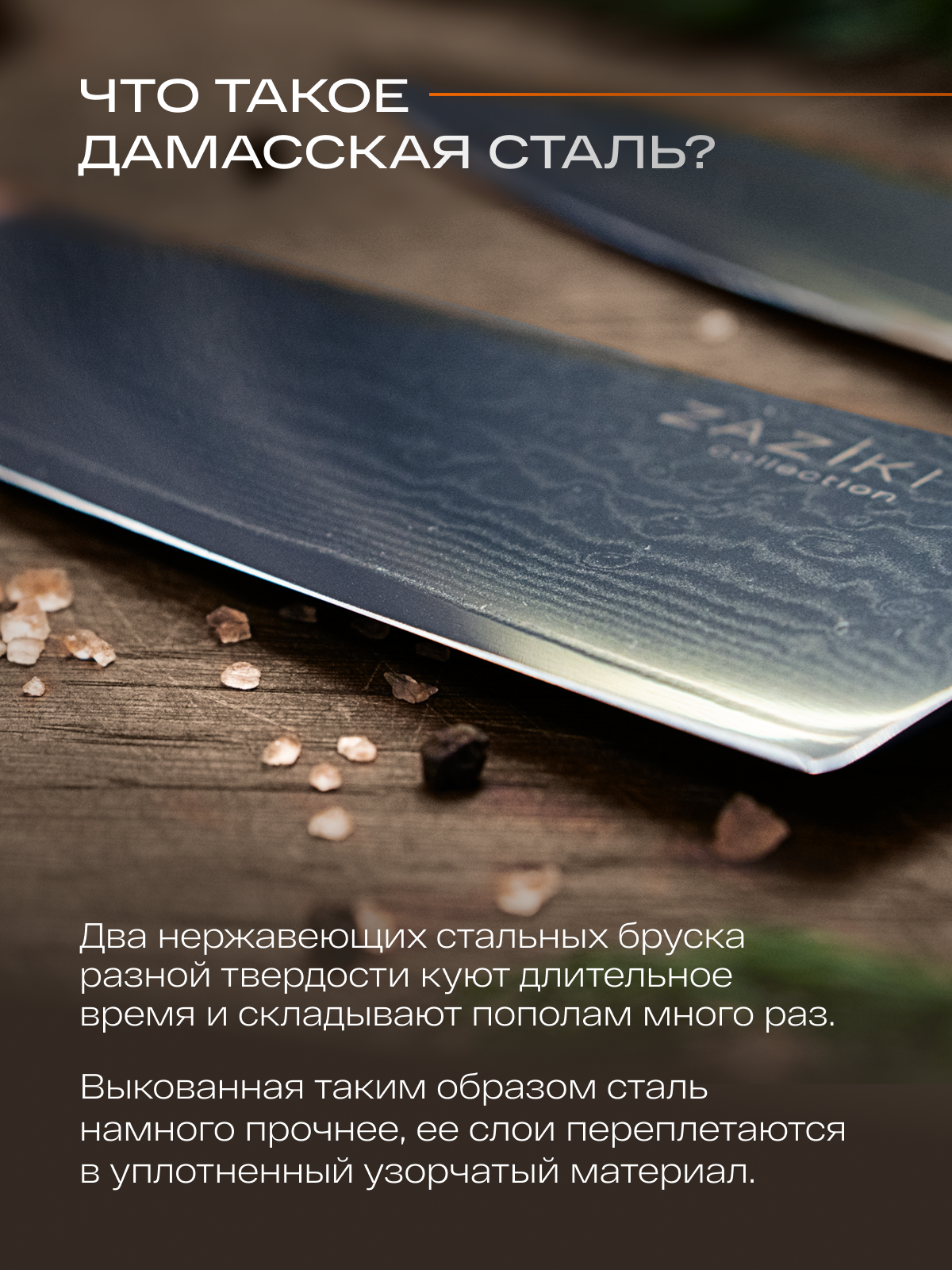 Купить Набор ножей кухонных Zaziki профессиональных поварских 5 шт из дамасской стали с доставкой по всей России.
