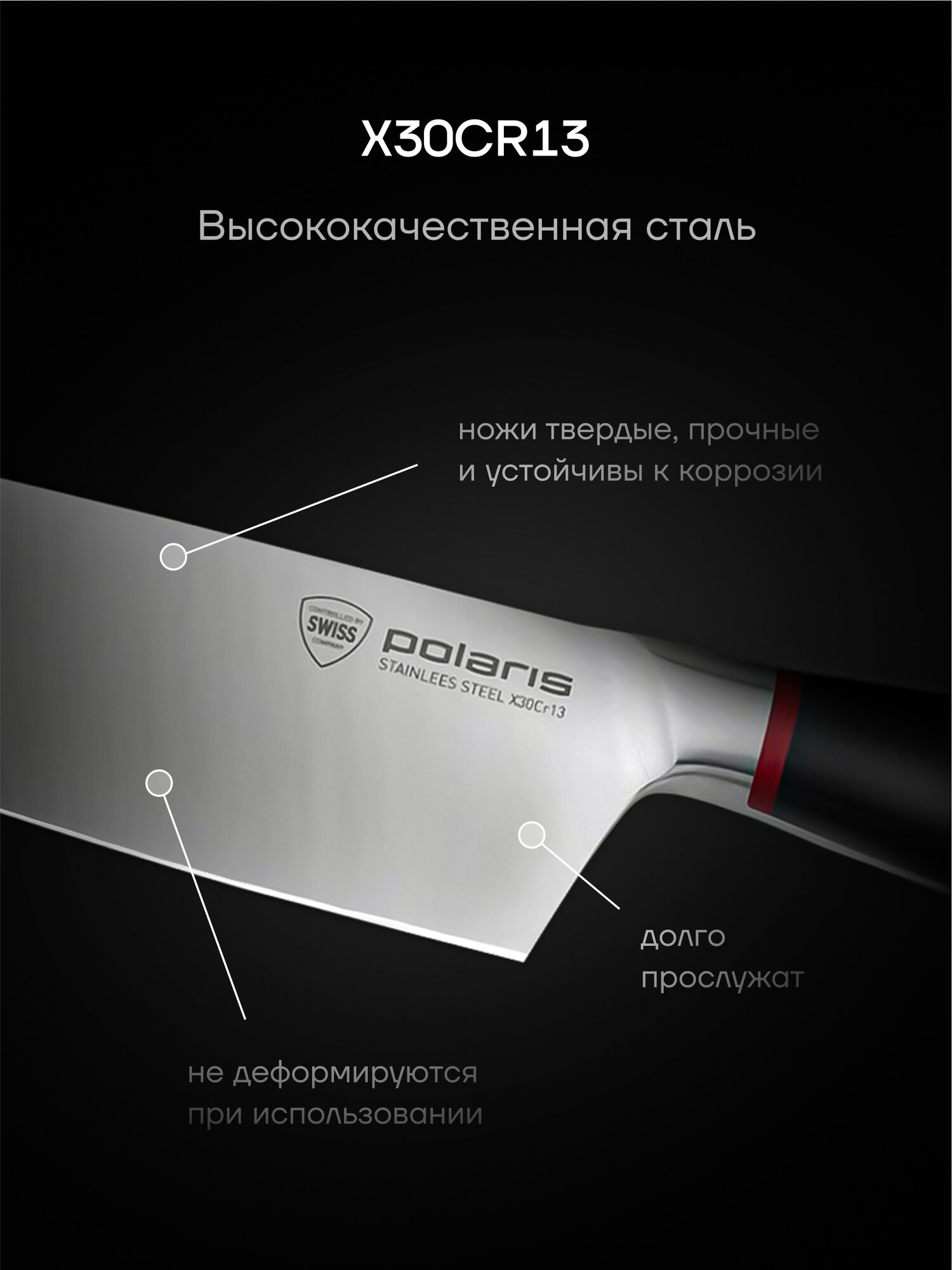 Набор кухонных ножей Polaris PRO collection-3SS, 3 предмета: поварской нож, универсальный нож, ножик для чистки овощей: сравнение цен, характеристики, фото, актуальное наличие и цены.