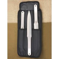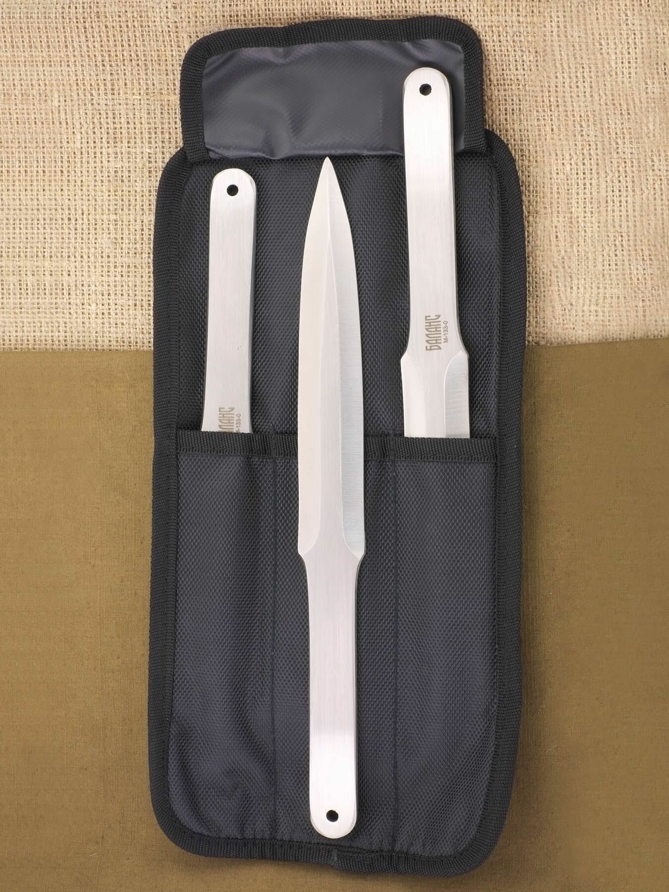 Набор ножей разделочных; в наборе, шт: 3; масса ножа, гр: 193; масса всех ножей в чехле, гр: 670; общая длина, мм: 287; длина клинка, мм: 167; толщина клинка, мм: 5; сталь: 40Х13; твёрдость стали, HRC: 43-45; особенность: без заточки; материал рукояти: сталь; ножны: нейлон, сверток; упаковка: брендированная картонная коробка