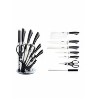 Набор ножей из 8 предметов в подарочной упаковке: кухонный топорик из нержавеющей стали - 1 шт нож поварской из нержавеющей стали- 1 шт нож для нарезки хлеба из нержавеющей стали - 1 шт нож универсальный из нержавеющей стали - 1 шт нож для очистки из нержавеющей стали- 1 шт точилка для ножей из нержавеющей стали - 1 шт ножницы - 1 шт подставка акриловая - 1 шт