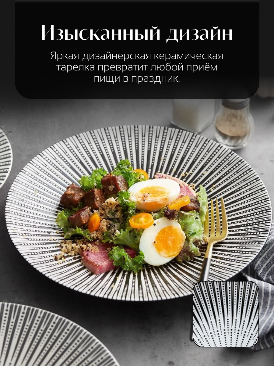 Универсальность: На такой тарелке будут прекрасно смотреться любые блюда – от изысканных десертов до сытных обедов. Ее уникальный дизайн подчеркнет красоту и оригинальность ваших кулинарных творений.