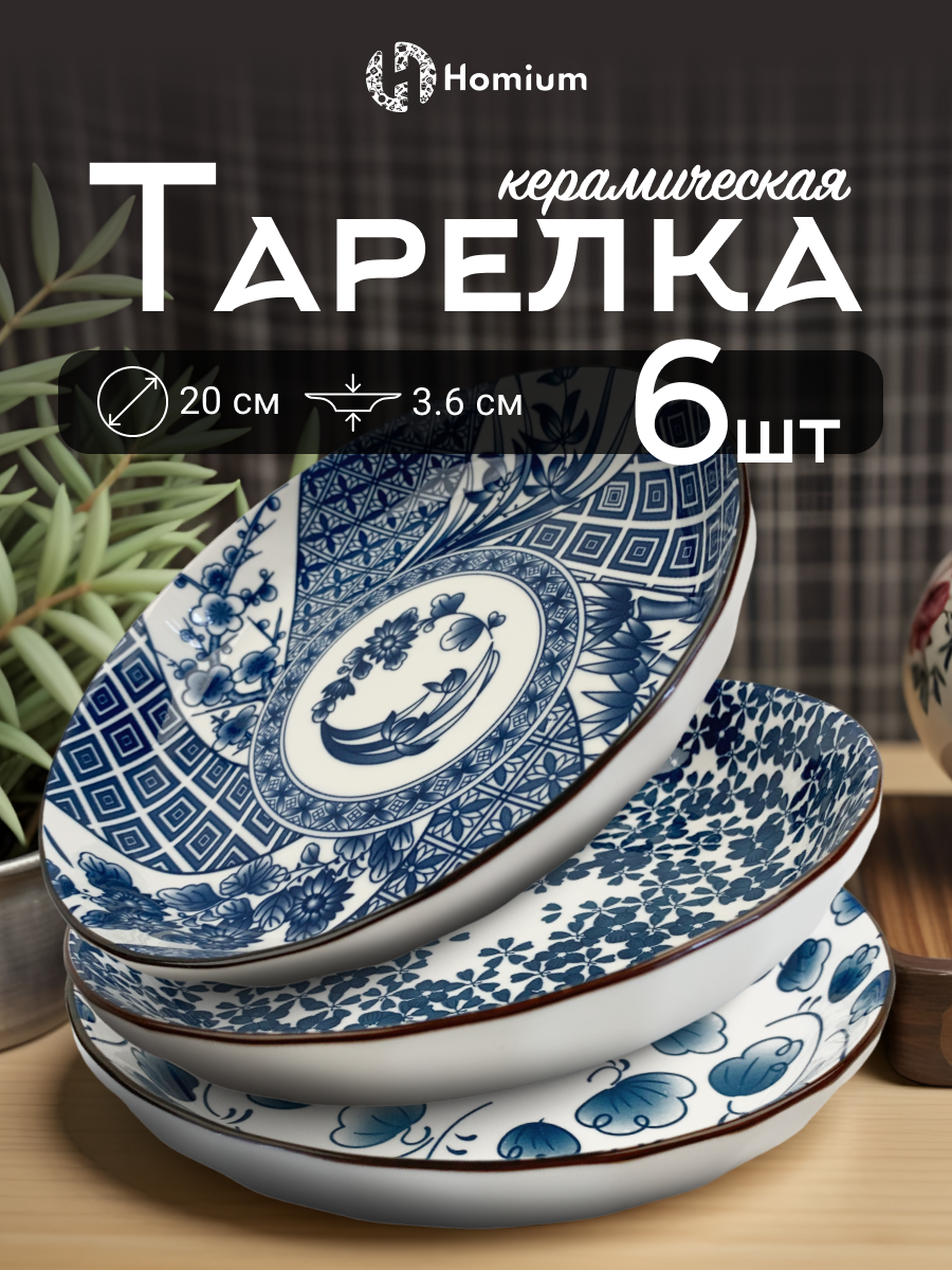 Купить Набор обеденных тарелок Homium Очарование, 6шт, цвет белый/синий, D20см, 6шт с доставкой по всей России. Набор обеденных тарелок Homium Очарование, 6шт, цвет белый/синий, D20см, 6шт: сравнение цен, характеристики, фото, актуальное наличие и цены.