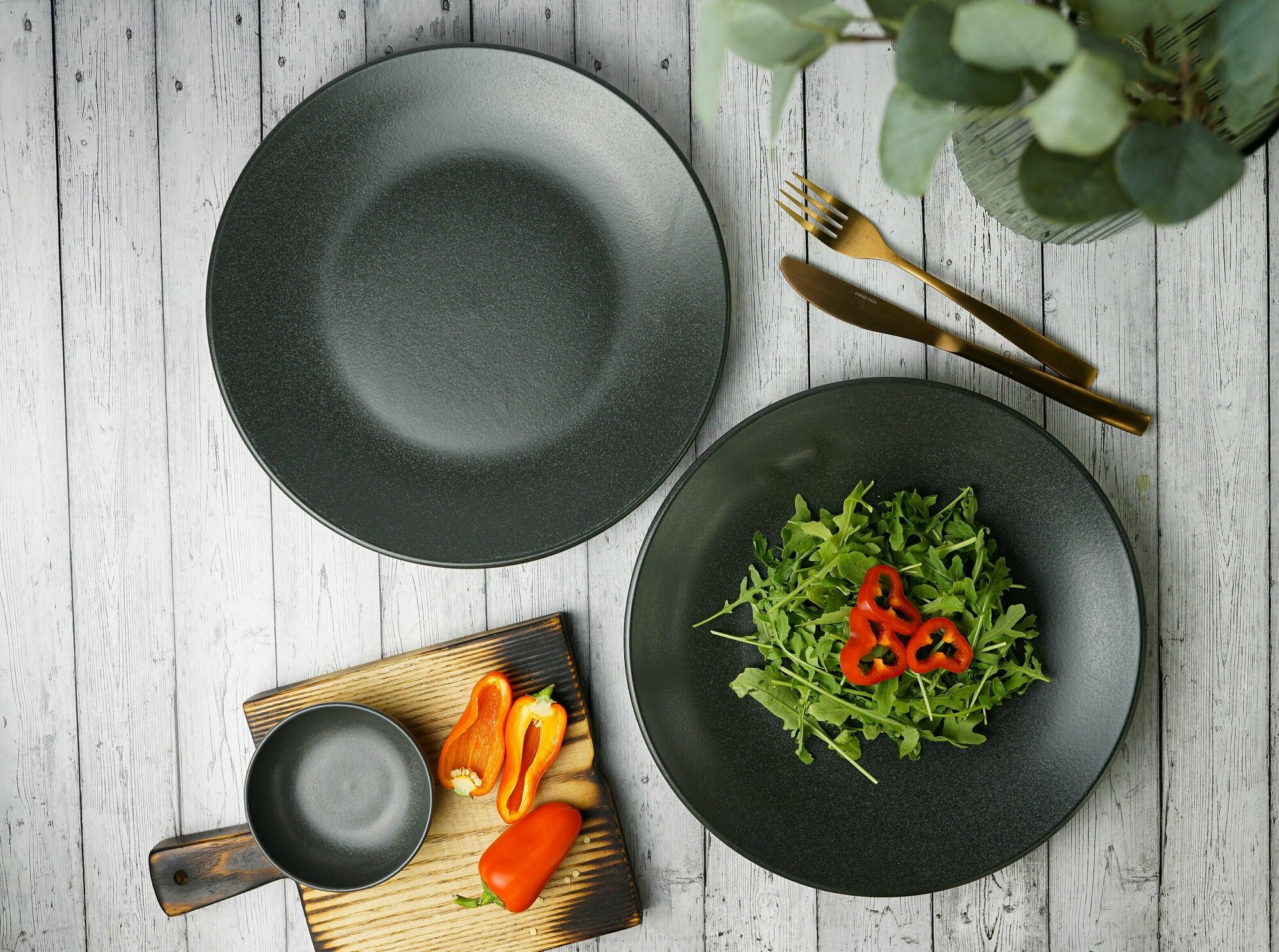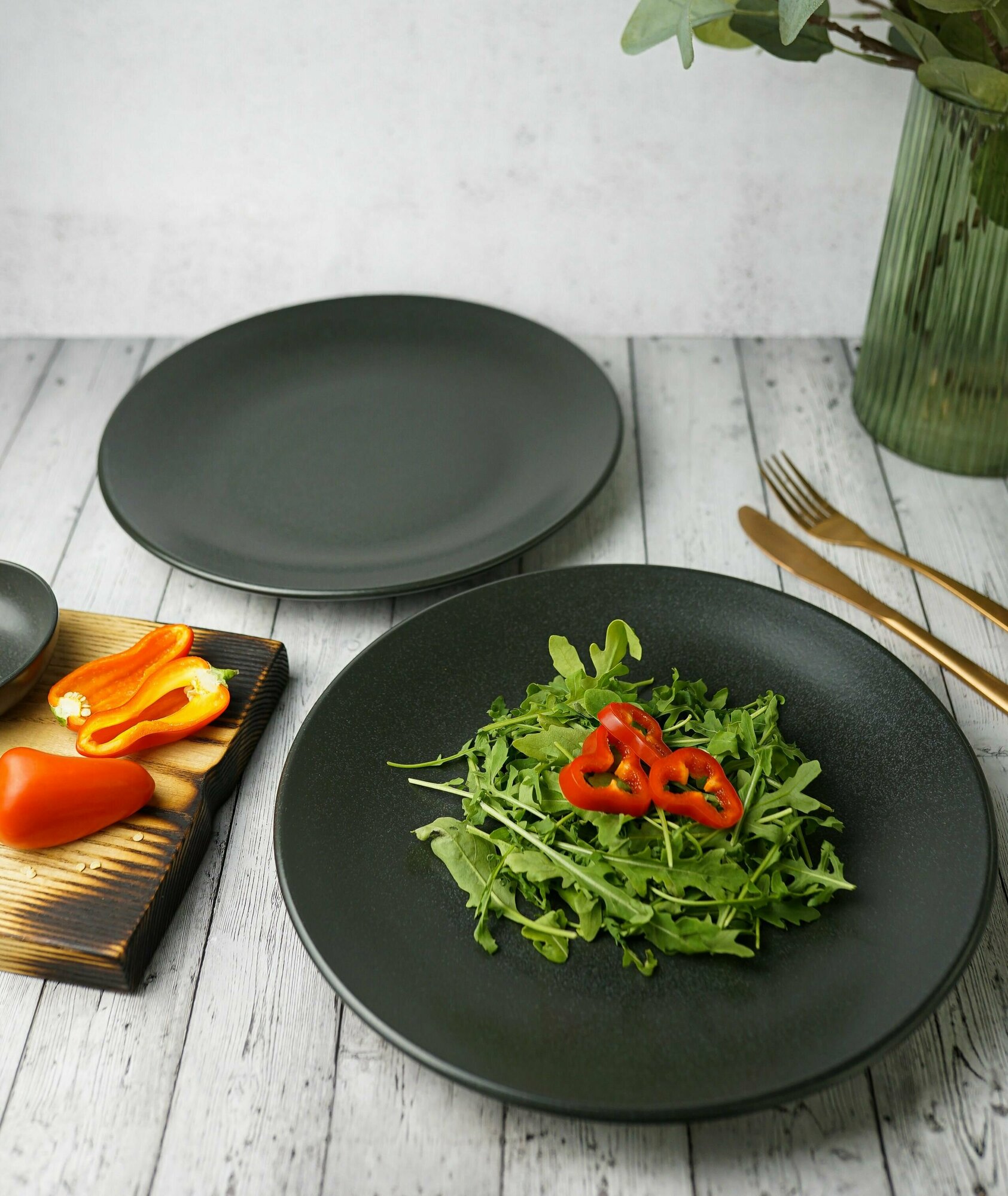 Набор обеденных тарелок Porland Seasons, на 2 персоны, 28 см, черные, фарфор, KitchenHold