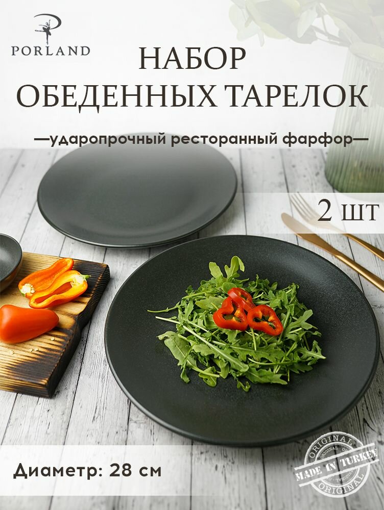 Набор обеденных тарелок Porland Seasons, на 2 персоны, 28 см, черные, фарфор, KitchenHold: сравнение цен, характеристики, фото, актуальное наличие и цены.